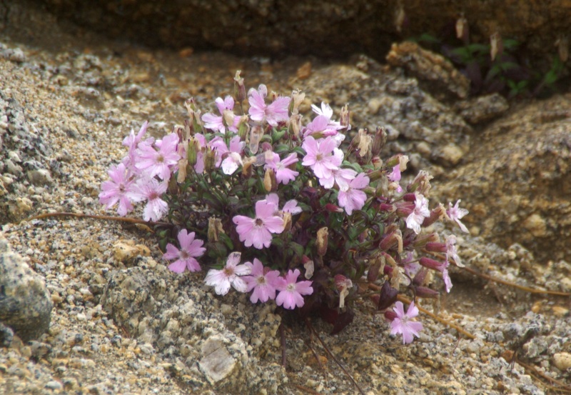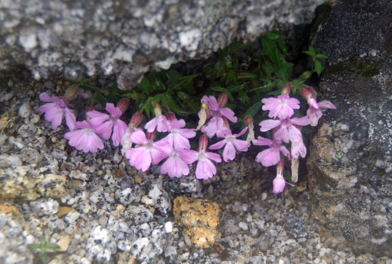 の山岳種で、南アルプスの固有種です。ほとんど土の無い花崗岩や乾いた砂礫にも咲いていました。
