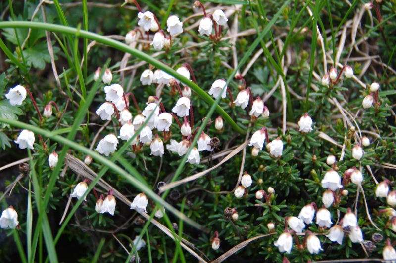 栂のような葉っぱに、つり鐘状の花が咲きます。ツツジの仲間で、実もなります。