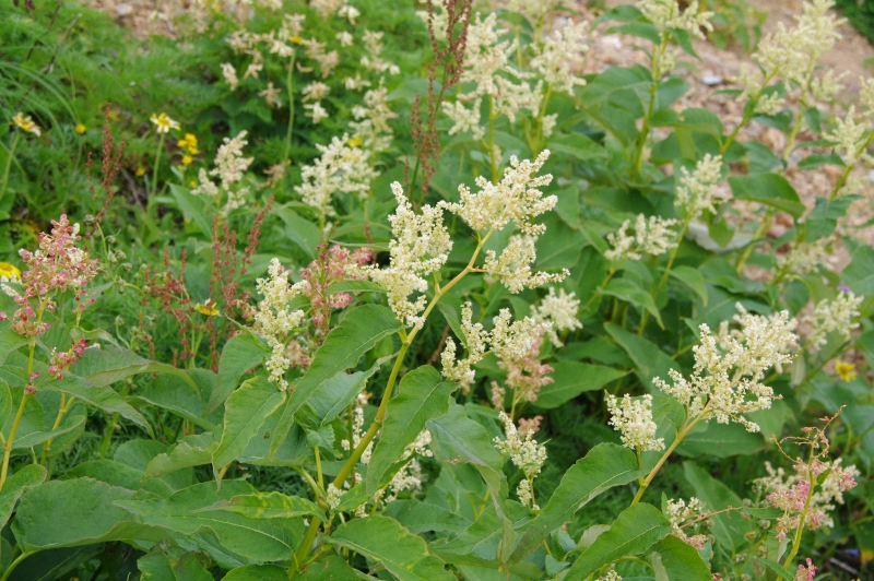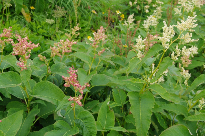 雌雄別株。1では、花が赤っぽいのが雌株、白いのが雄株です。