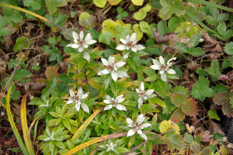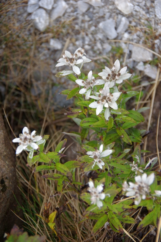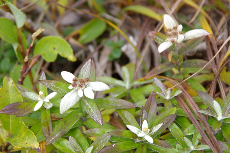 同一種という見解もあるそうです。灰白色の頭花は白い苞葉の上に付き、はっきりした柄があることで、柄のないミネウスユキソウと区別できます。