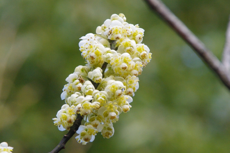 外側の大きな花弁が目立ちます。たくさんの花がつくと、枝の上方が泡立っているかのような印象です。