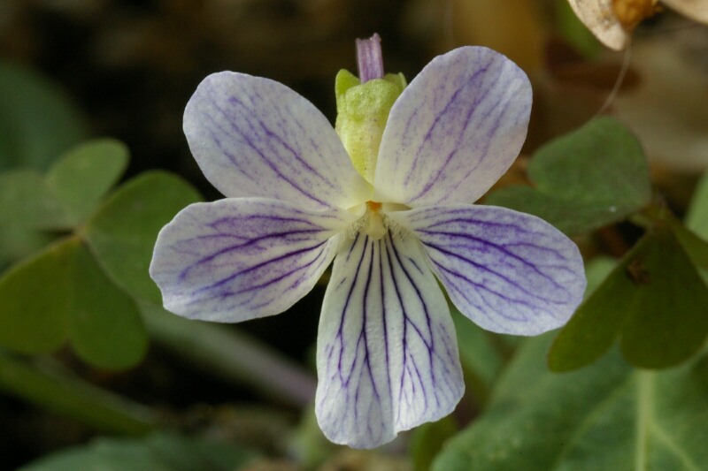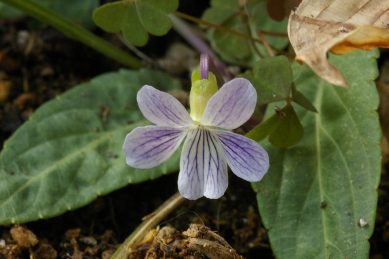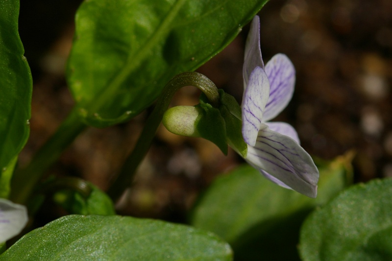 花色は白に近く、たくさんの紫の線が入っています。通常は4〜5月に咲きますが、1-2は秋の狂い咲き。