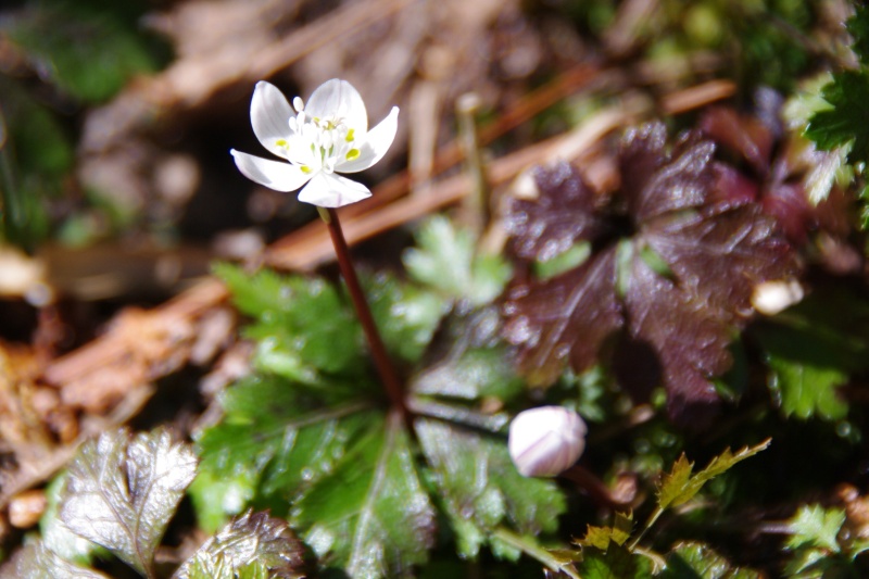 スプリング・エフェメラルのひとつ。オウレンの中で、葉が5枚あるのが特徴で、梅に似ているので梅花の名がついています。