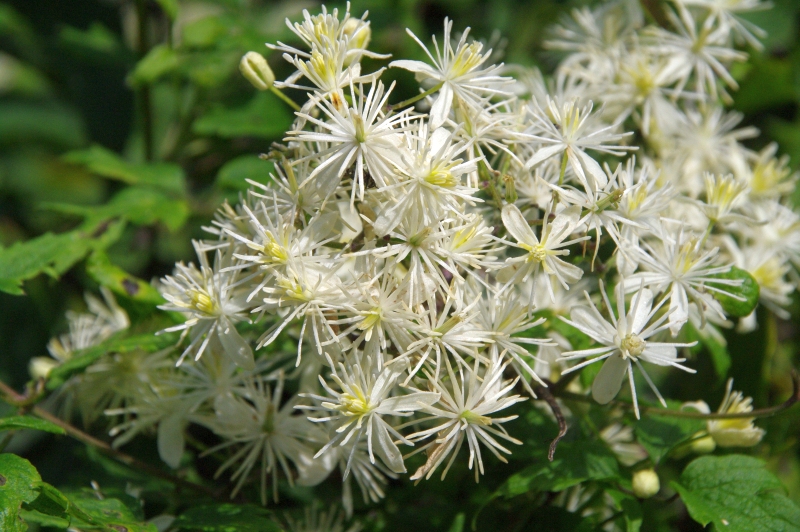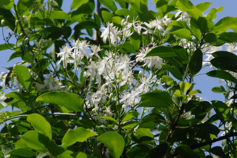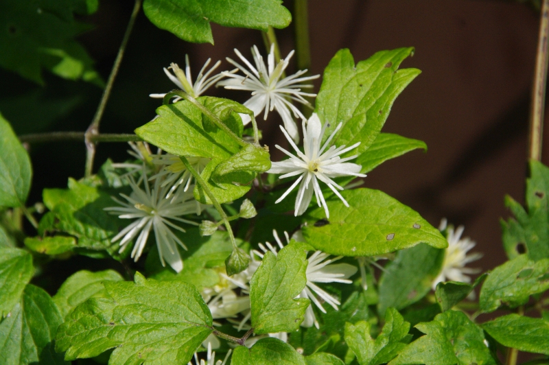 日当たりの好きな蔓性の植物です。初秋頃白い花を咲かせます。花弁状の萼片は4個です。
