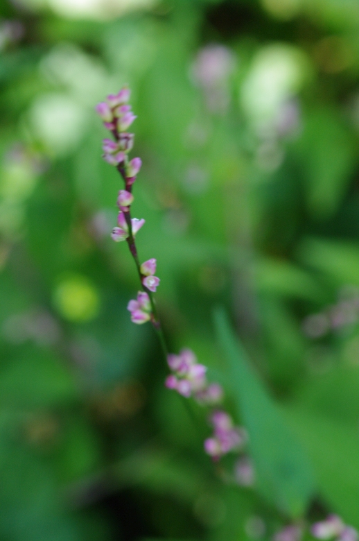 花穂がまっすぐに延び、そこに白〜ピンクの小さな花が付きます。ボントクタデなどと同じく、