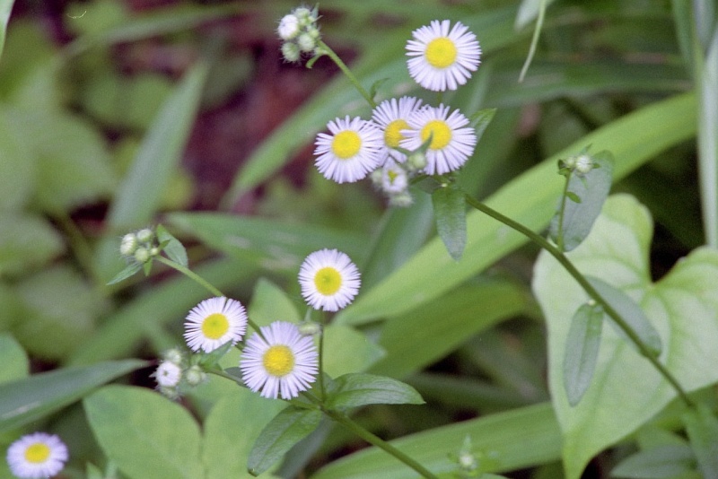ハルジオンとよく似ていますが、つぼみが垂れないのがヒメジョオンの方です。といっても2や4、6では少し垂れ気味ですが・・・。春から夏そして初秋まで咲いています。