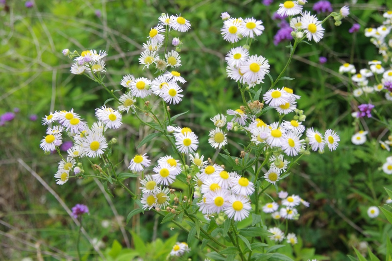 春先だけしか咲かないハルジオンとの違いです。舌状花はどちらも細いですが、本種のほうが少し太い感じです。ともに北アメリカ原産の帰化植物で、明治のはじめに