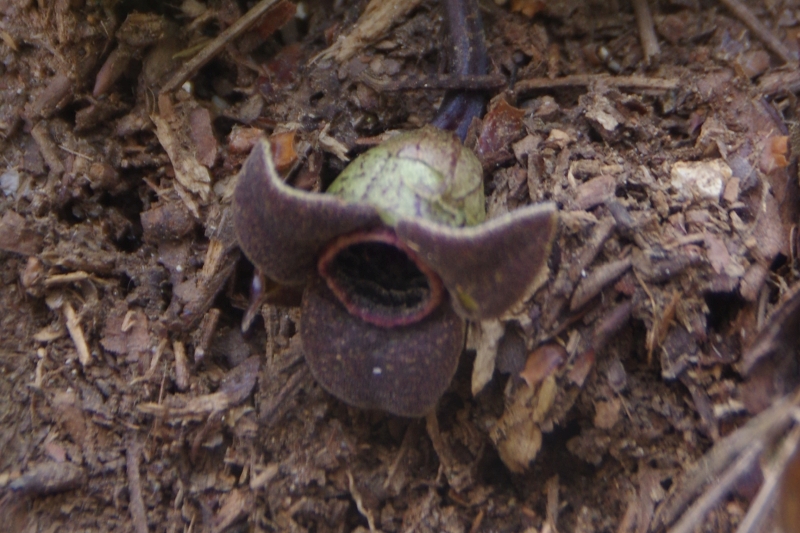 関西に多いカンアオイの一つです。葉は丸型です。花は開口部が大きめ。葉は8のように丸みを帯びています。