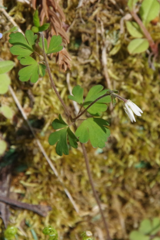 オダマキ属の愛らしい花です。葉はオダマキに似ていますが、花は小さく下向きで、矩がありません。