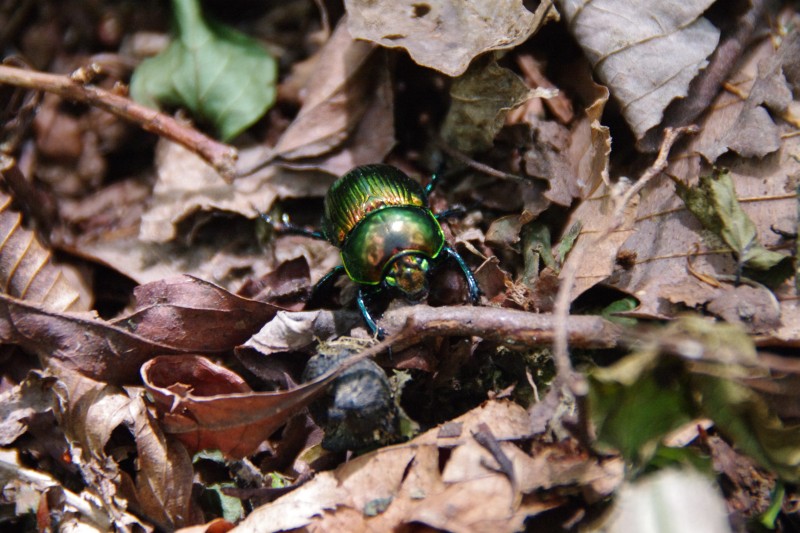 オオセンチコガネは糞虫ですが、美麗種でもあります。鈴鹿山脈には北部に金赤緑色、南側では緑色の強い金緑色、