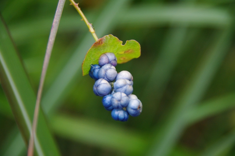 でも、果実は美しい藍色をしていて、筋が入っています。実の直前に丸い苞葉があるのも特徴です。