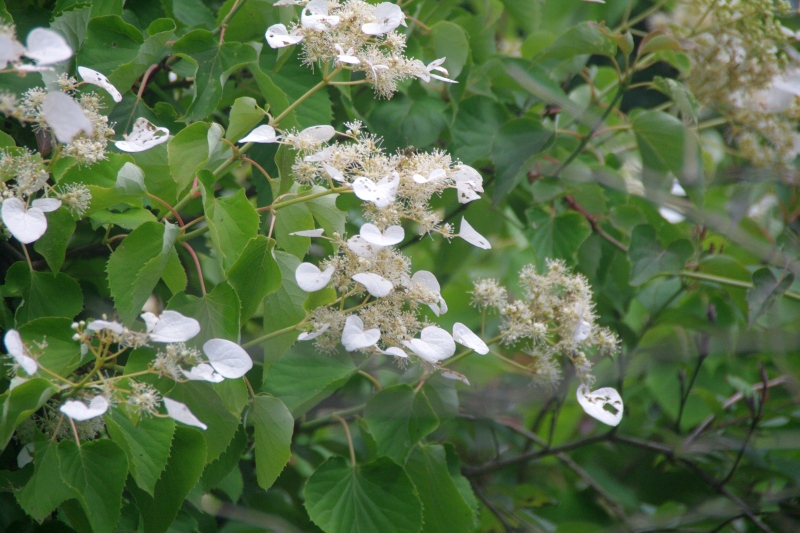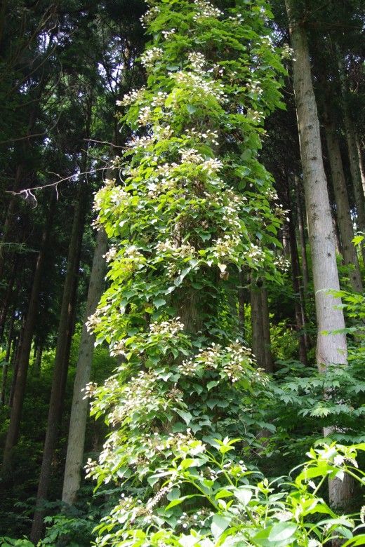 1-2は岩ではなく、杉の木に絡みついていました。白い装飾花が遠くからでもよく目立ちます。