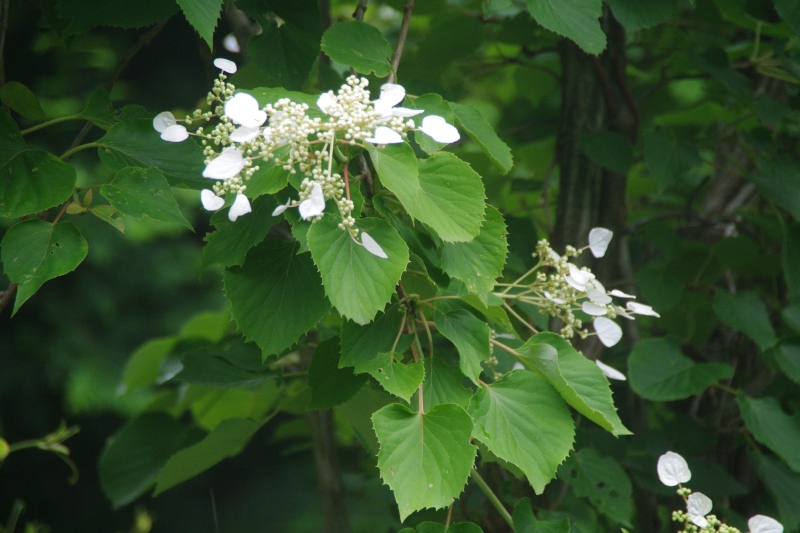 は装飾花が4ガク片に対し、本種は1個です。葉の鋸歯も鋭くて独特です。