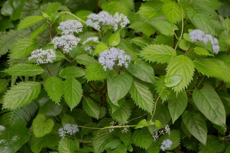 アジサイの仲間。藤色の独特の色合いがあり、また細かい蘂が特徴的な花です。