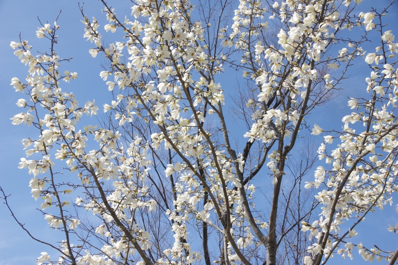 春に山の斜面が点々と白くなる、そんなときにはコブシかタムシバが咲いています。