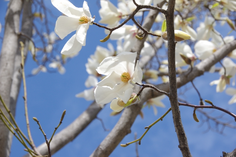 1や4、9に見えるように、花のすぐ下に、緑の葉がつくのがコブシです。なければタムシバ。