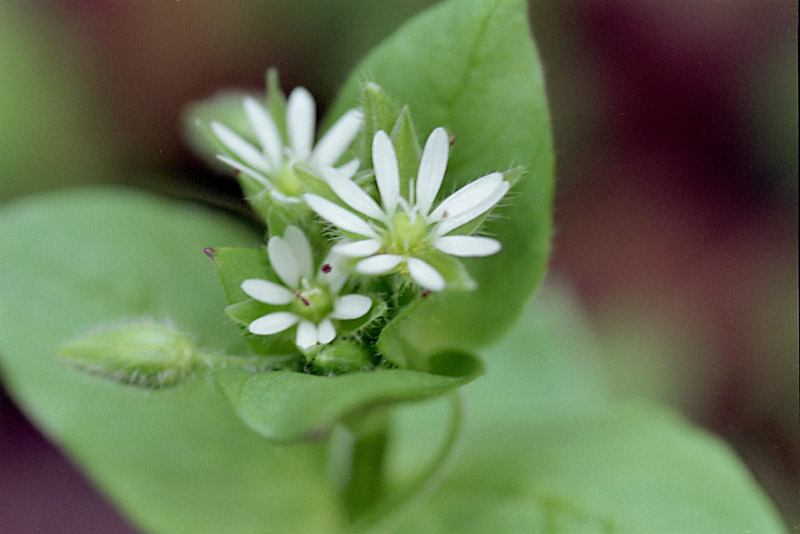 春の七草のひとつです。茎が暗褐色で、ミドリハコベ(ハコベ)と区別できます。また、隣接の花弁は重なりません。