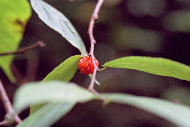 赤い糸を持つのが雌花序です。4以降が果実です。ちょっと草の臭いがしますが食べらます。
