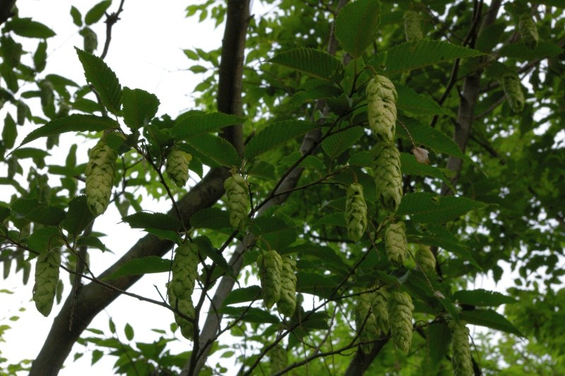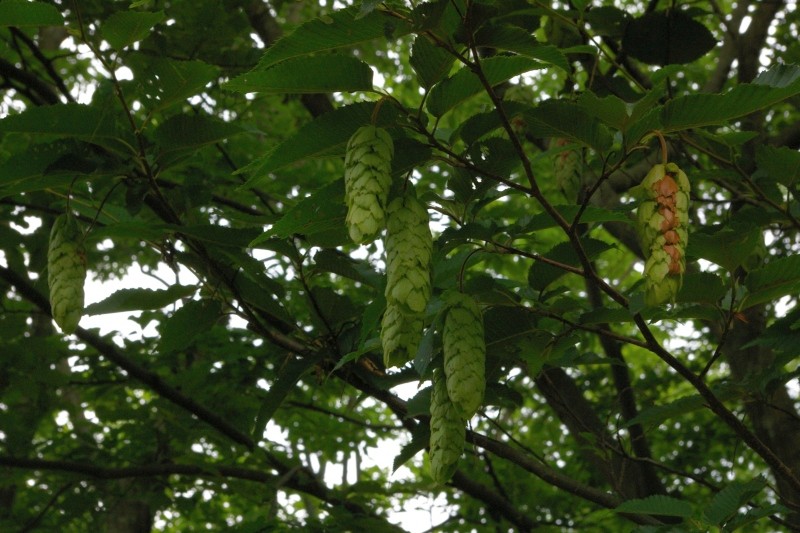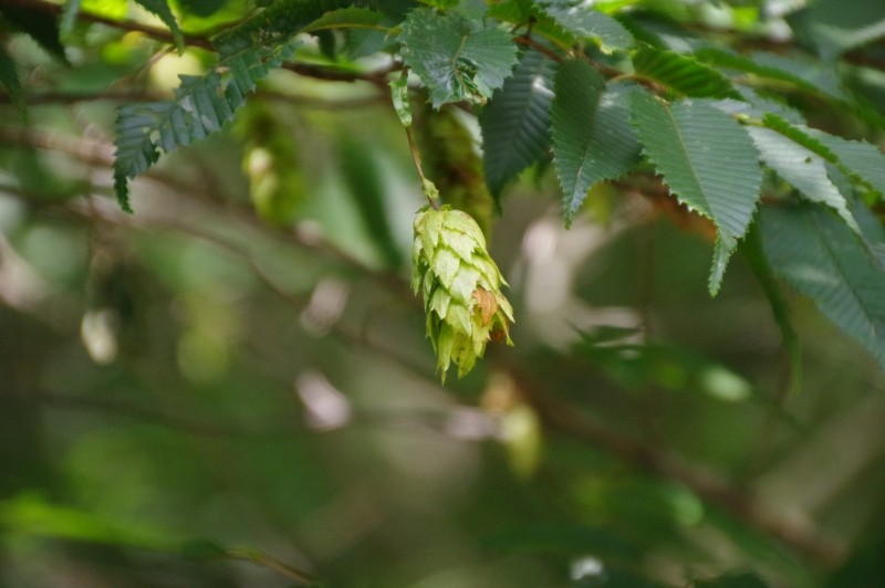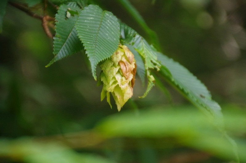 。雌花の基部の小苞が花のあと大きくなり、長さ5〜10cmの葉状の果苞になります。果実は堅果で、10月頃熟します。