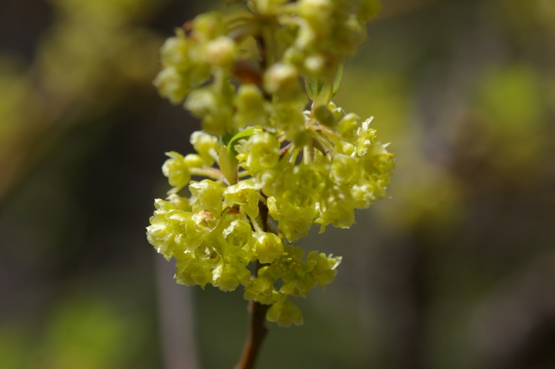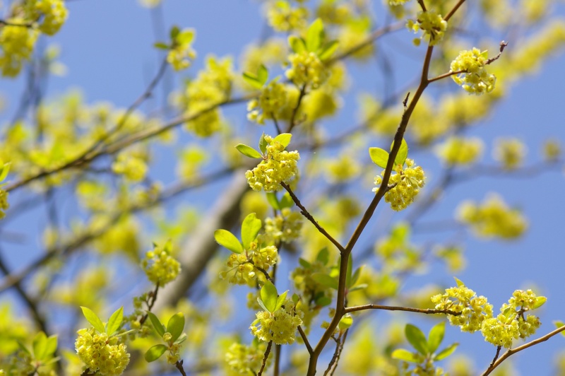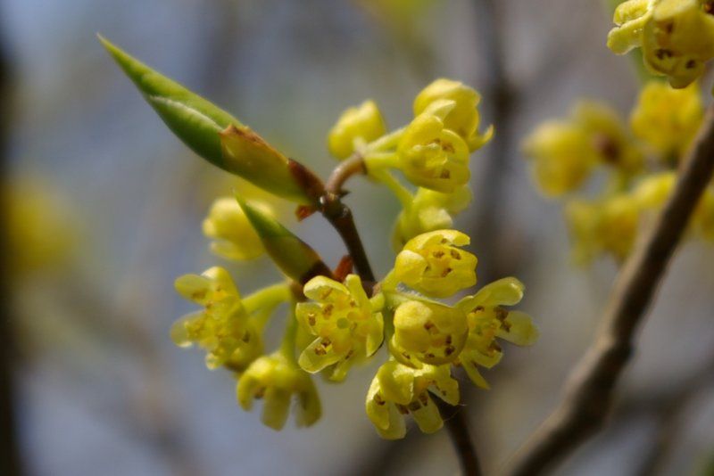 花と同時に葉っぱが最初は角のように飛び出し、やがて開き始めてくるのが、クロモジの特徴です。