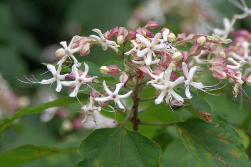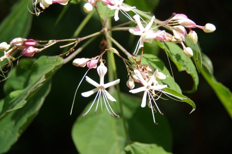 夏、白くて香りの強い花が咲きます。そして秋、真っ赤な萼に抱かれた
