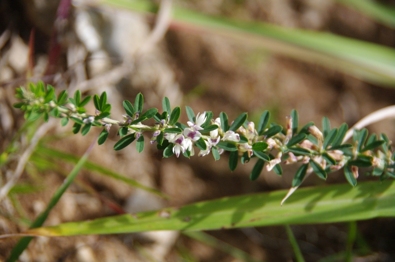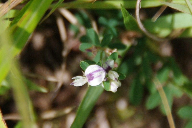 葉がたいへん小さいハギです。9月、葉のつけ根に、白色に紫色の斑点がある蝶形の花を 2〜4個つけますが、