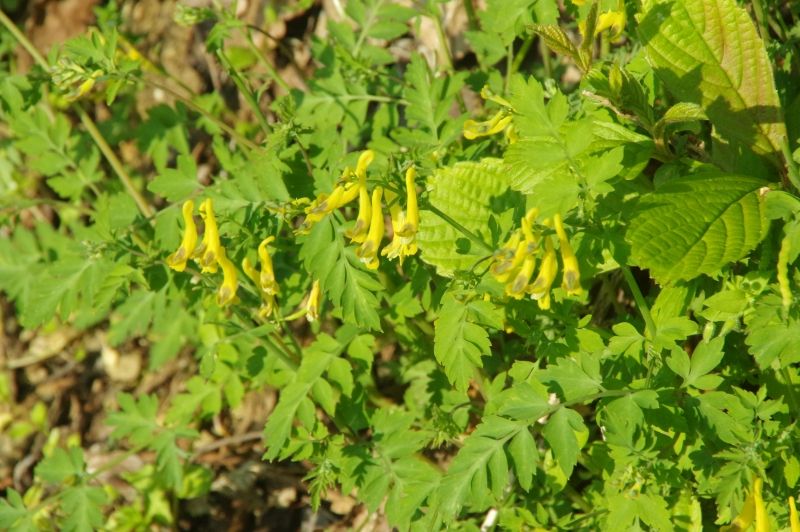 ヤマエンゴサクの黄色版といったところでしょうか。よく似たフウロケマンより花が多く付きます。