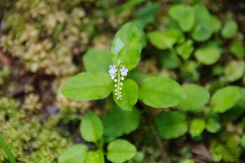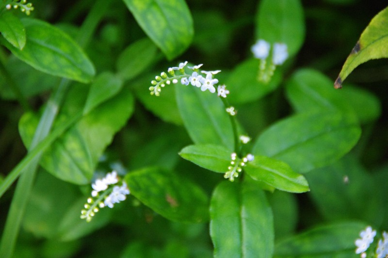キュウリグサとよく似た小さな花ですが、水辺のかなり湿ったところに咲いています。花穂は下から順に咲きます。