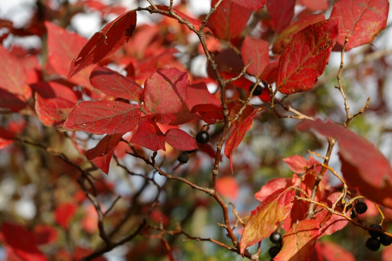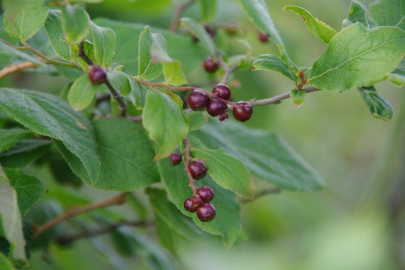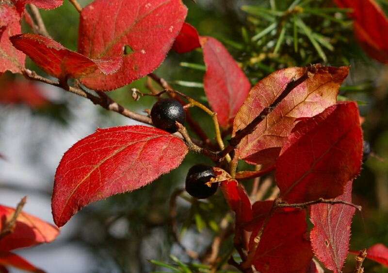 最初(5-7)は赤褐色で、茶色(1-2)を経てだんだんと黒っぽくなる(3-4)実です。
