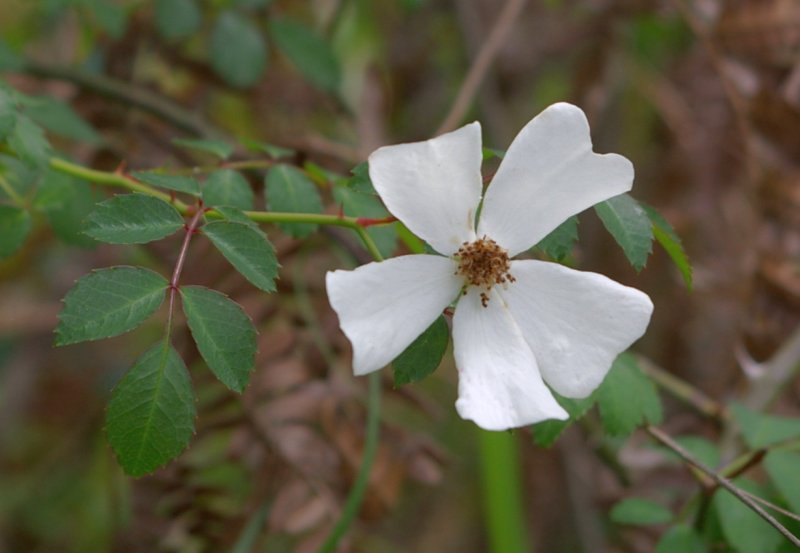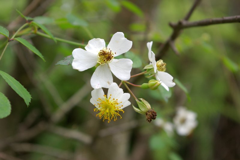 ノイバラは一般的には春の花ですが、5〜6月に咲きますが、7月ごろまで見られます。5枚の花弁をもち、芳香を放ちます。