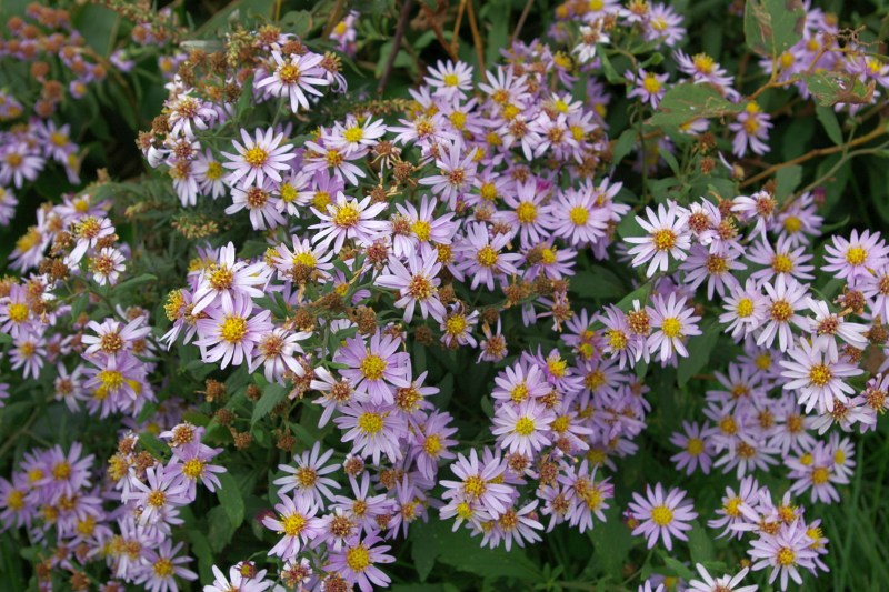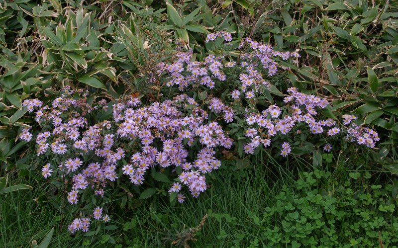 わずかに紫がかった程度ですが、1-2はけっこう色の濃い花がついています。頭花は直径約2.5cmで、