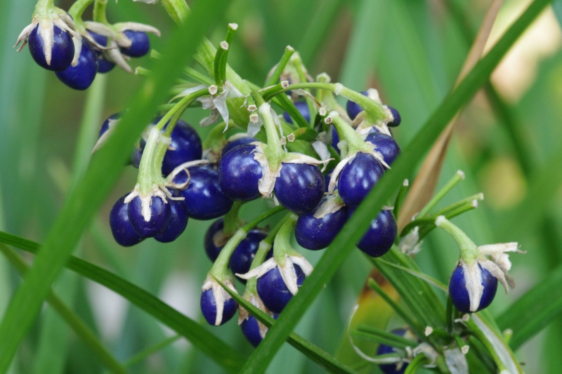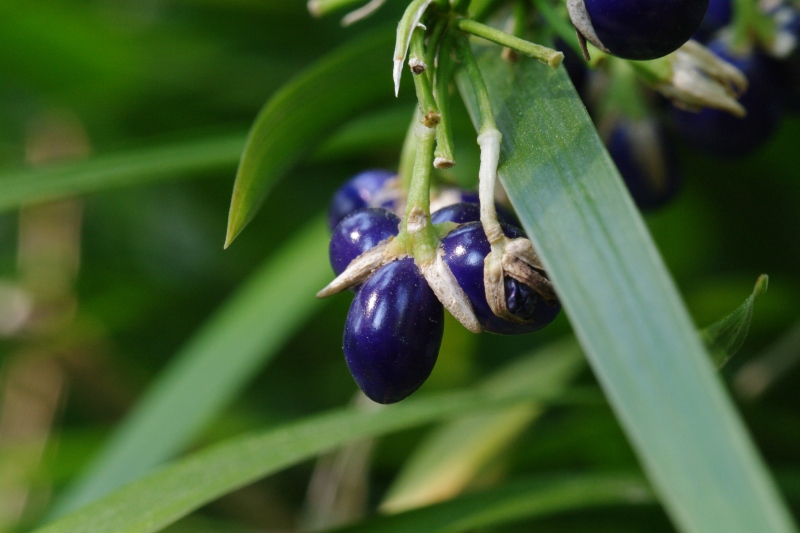 瑠璃色の実が美しいユリ科ジャノヒゲ属の多年草です。秋に花が咲き、冬から春にかけて実がつくようです。