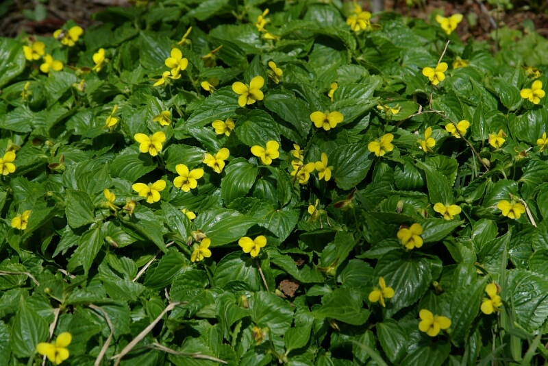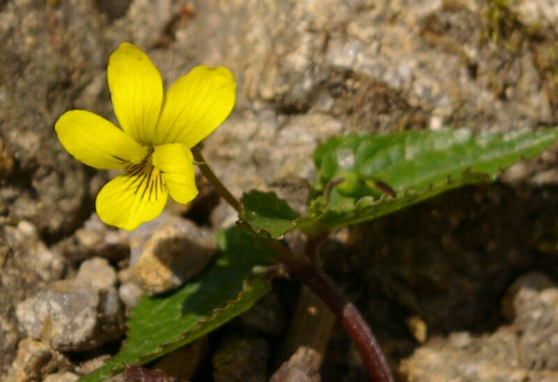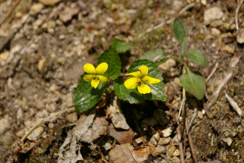と同様に黄色いスミレの一つですが、葉が大きく、形も独特なので、区別できます。滋賀では、湖北の野坂山地で見られます。