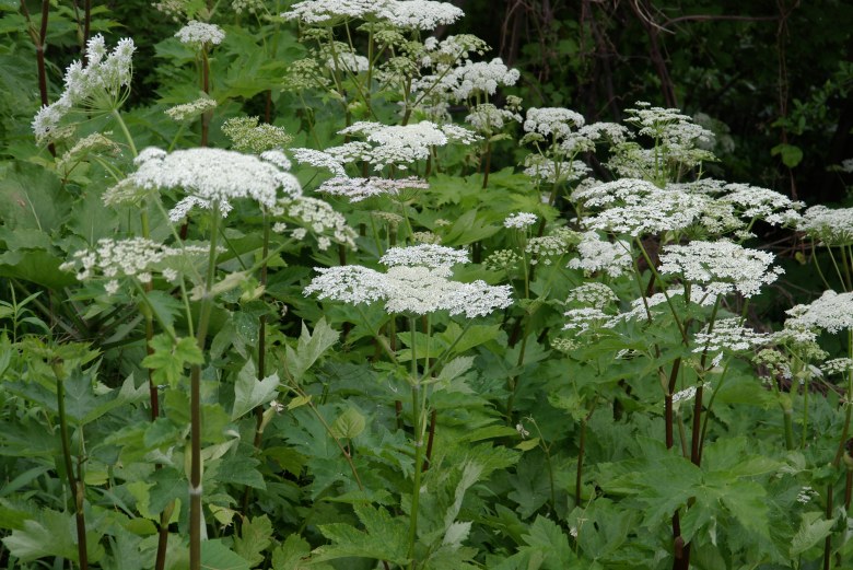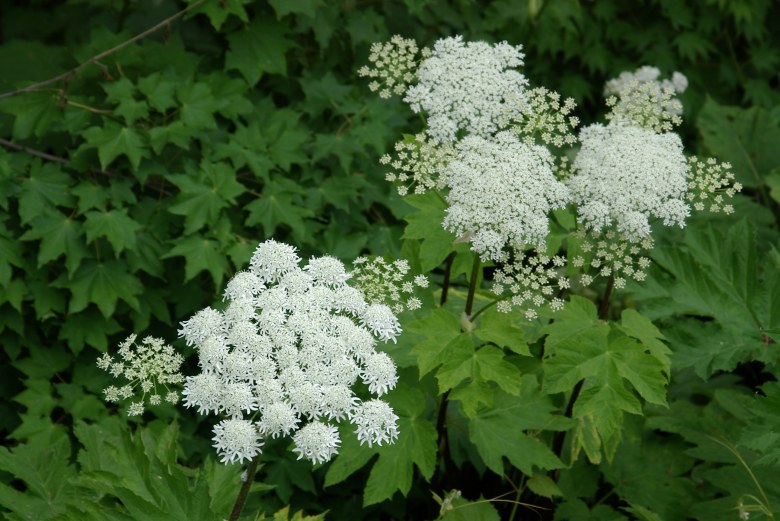 ハナウド類は白くて細かい花を付け、シシウドに似ていますが、花の外側に大きな花弁があるのが特徴です。