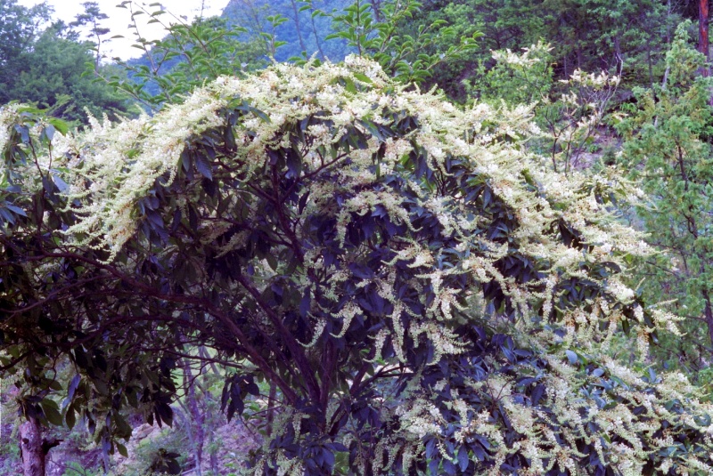 夏、白くて細かい花が咲きます。一面に芳香が立ちこめれば、近くにリョウブが