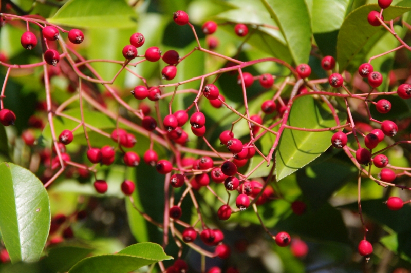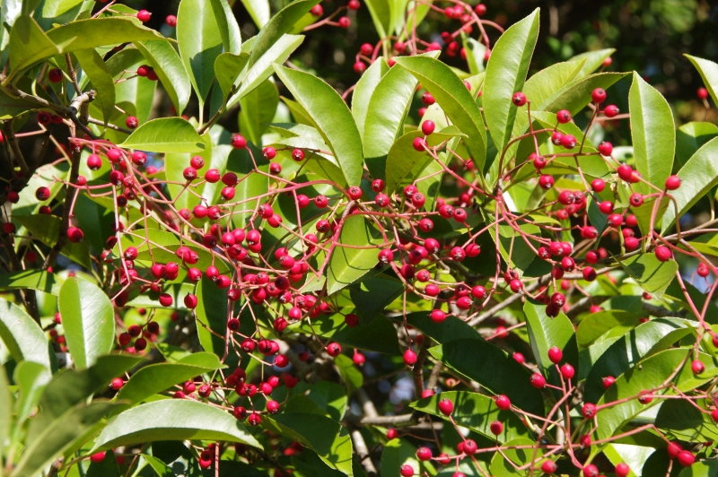 艶のある葉が特徴です。果実は長さ8mmほどの楕円形。熟すと、黒くなっていきます。