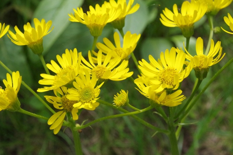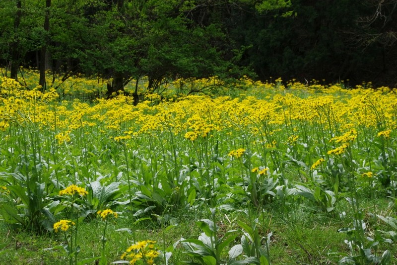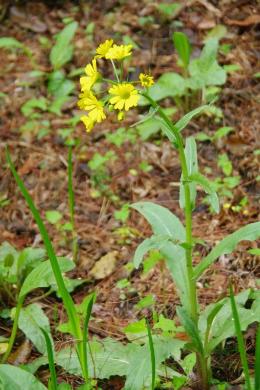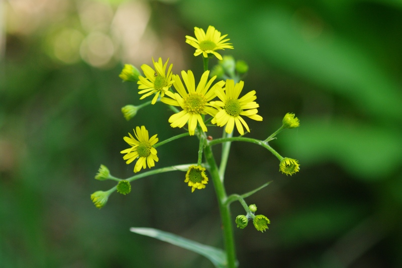 湿地に生えるキク科の黄色い花です。高さ50cmほどの柄の上に花がつきます。