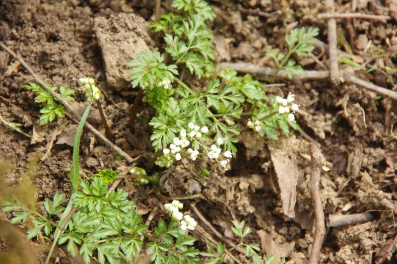 セントウソウはセリのなかまです。漢字では「仙洞草」。最初に咲くから「セントウ」になったという説も。