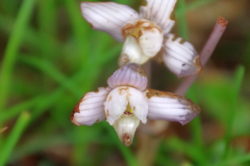 和名のショウキは魔を除くという神様、鍾馗から。腐生植物で、葉緑素をもちません。7〜8月、ピンク色の花を咲かせます。