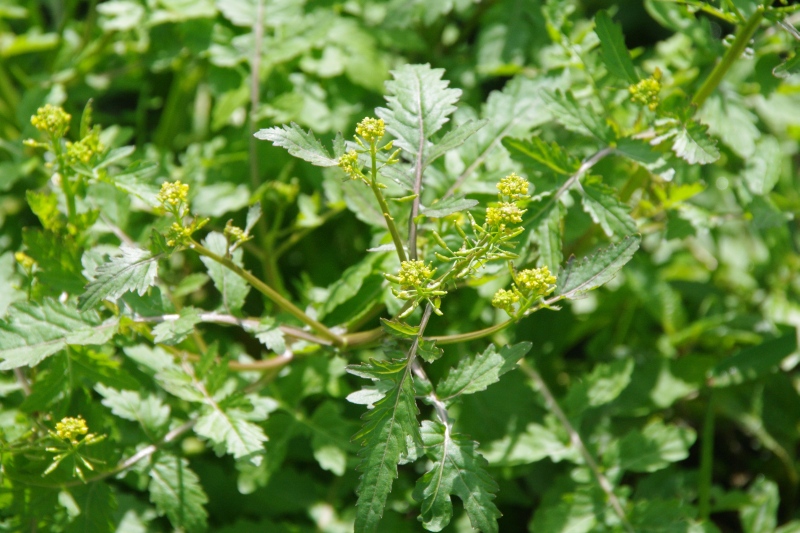 は、葉が本種ほど切れ込まず、果実が円柱状なので区別できます。