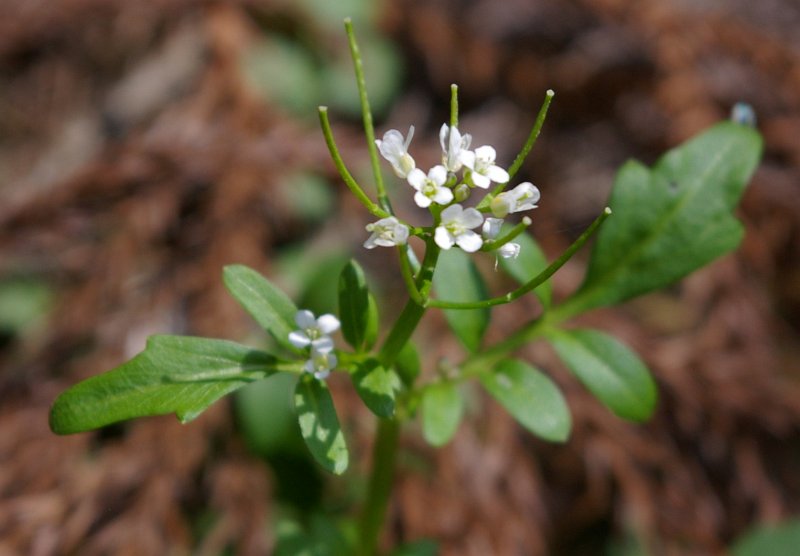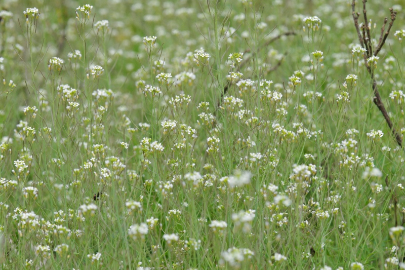 (ペンペングサ)に似ていますが、ナズナは軍配のような果実(種)、こちらは棒状の果実ができます。
