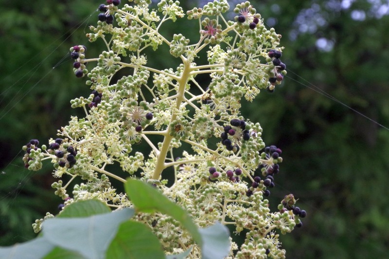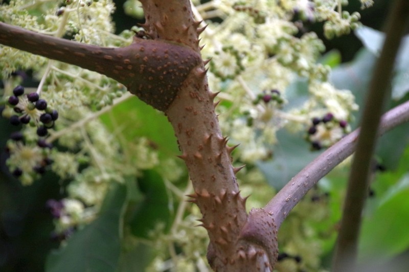 いますが、この刺が確認できると、タラノキということになります。7では、若い実ができてきています。