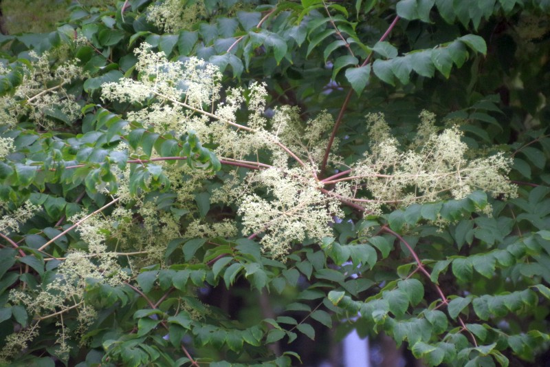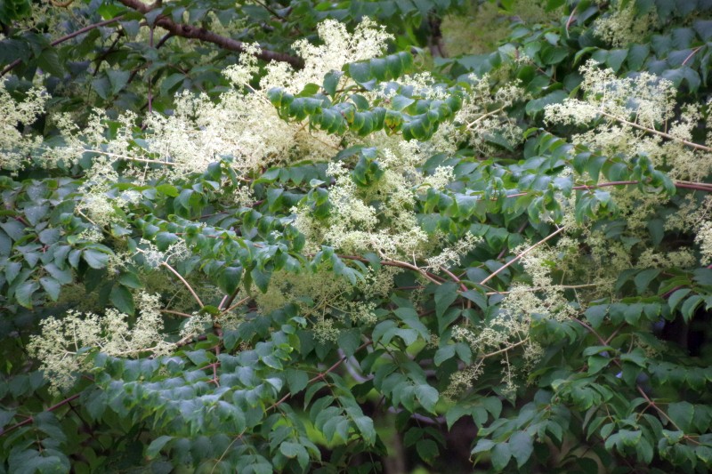 山野ではご注意ください。3、5によく写っているすさまじい刺がシンボルです。葉や花は、ウルシ科のヌルデによく似て
