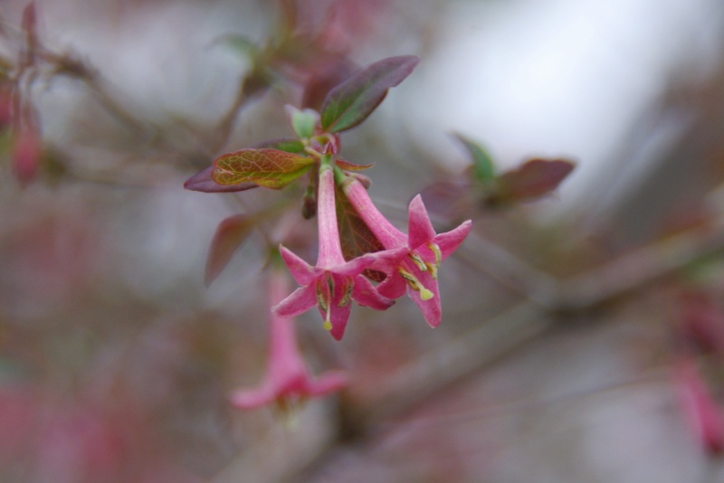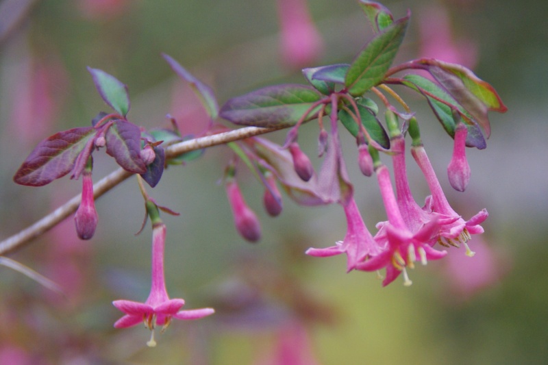 下向きに垂れ下がって咲く赤い花が印象的です。花の先は5つに切れ込んでいます。