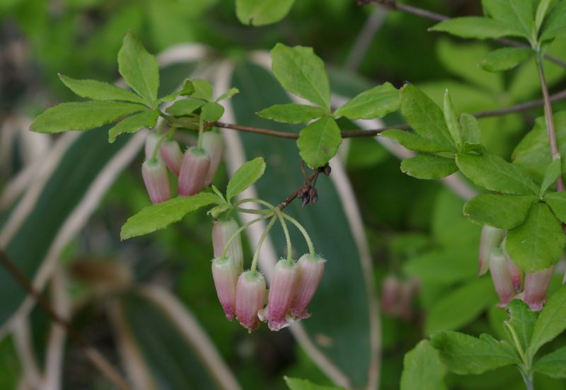 少し地味な壺型のツツジです。本州中部以西・四国の温帯に生育するヨウラクツツジで、花は5月から6月はじめ。