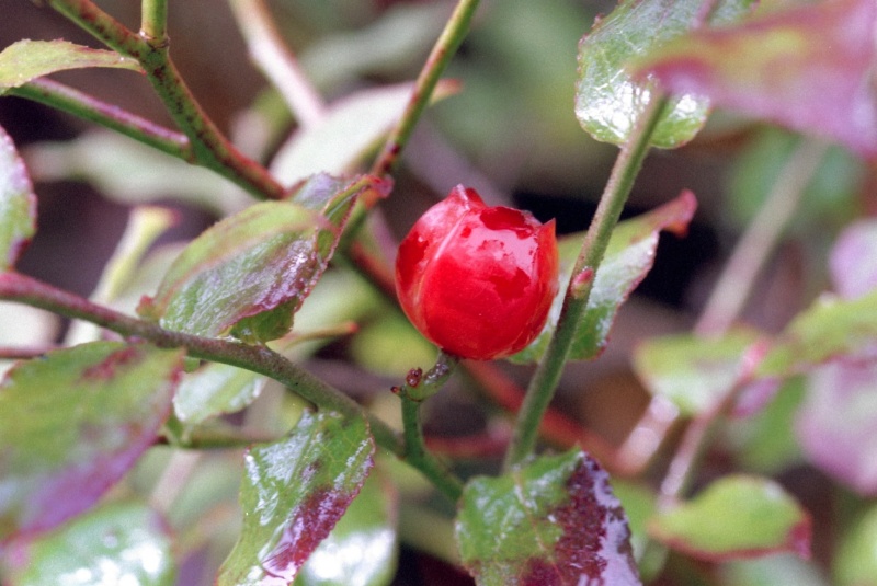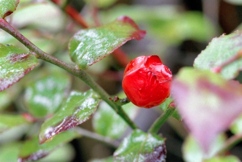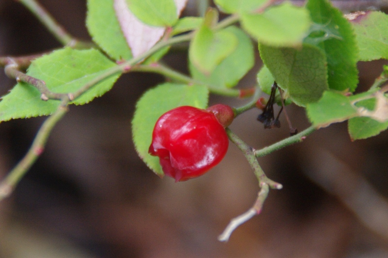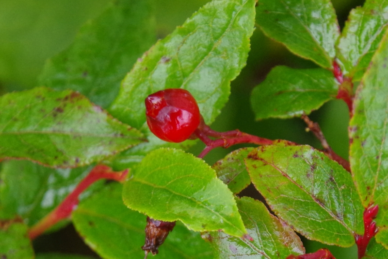 小さいですが、真っ赤な艶々の実が夏に付きます。稜があるので、ヒメウスノキと区別できます。