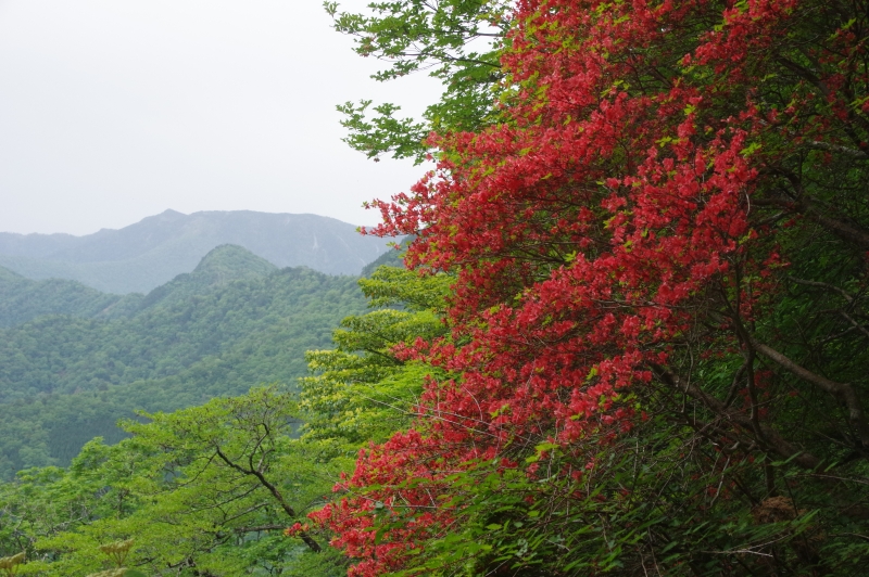 鈴鹿山脈や比良山系はツツジの宝庫ですが、このヤマツツジもあちこちで見られ、新緑の山に赤いアクセントを与えてくれます。