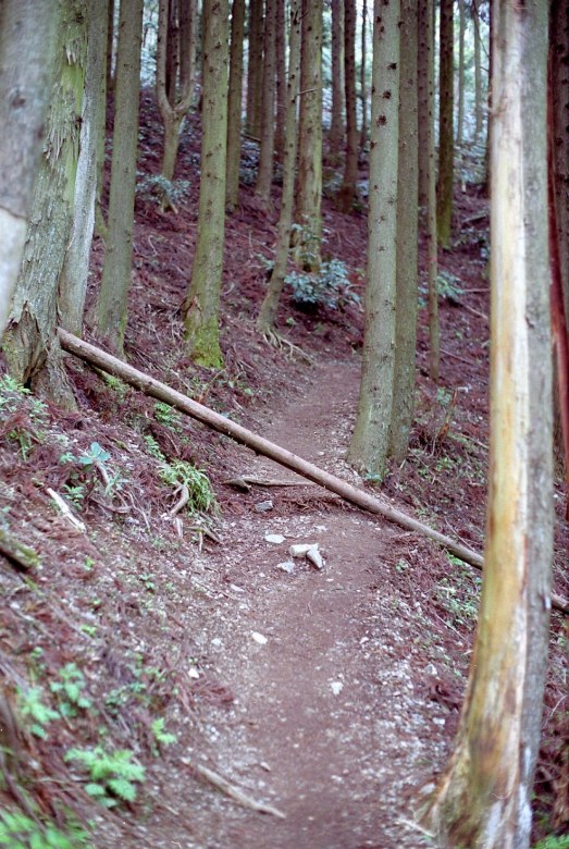 5合目までは杉・檜の植林や二次林の樹林帯を登ります。