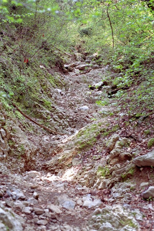 聖宝寺からの登山道(聖宝寺道)は、左手の小谷を登っていきます。