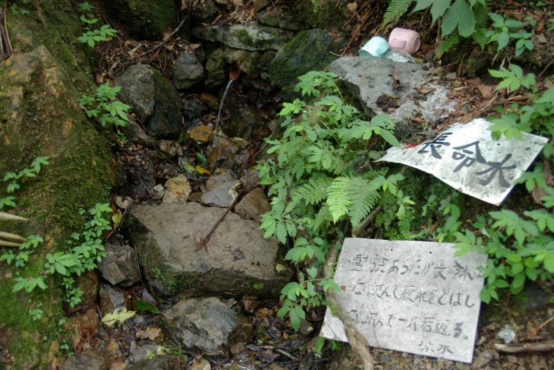 ベンチのある長命水です。水はこの少し右からちょろちょろと出ていました。
